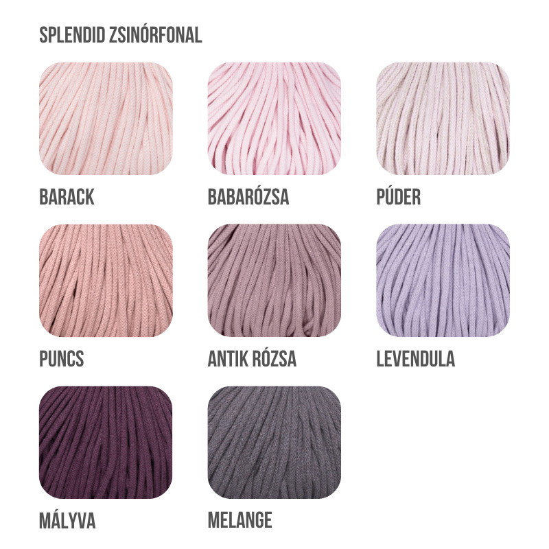 Alapanyaga: Spendid 100% pamut zsinórfonal, az általad választott színben készül.
